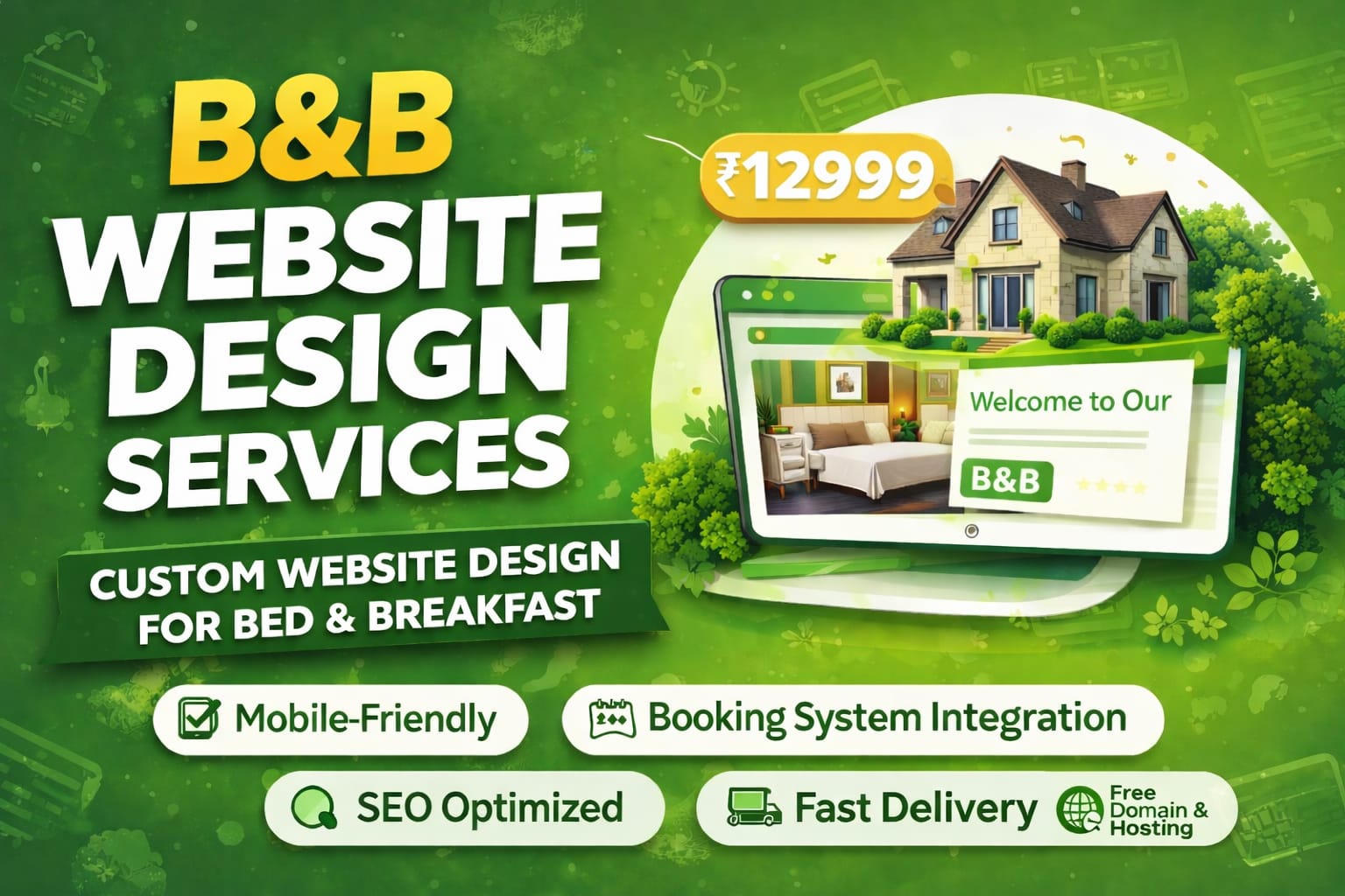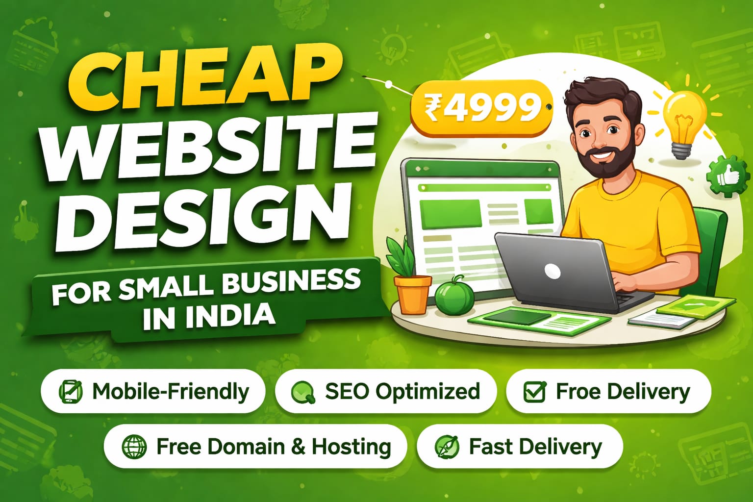 Includes: Personalized Domain (.Com, .Net, .Info, .IN, .Biz), 2 Email IDs (10GB each), 50GB Web Hosting, and Complete Website Development